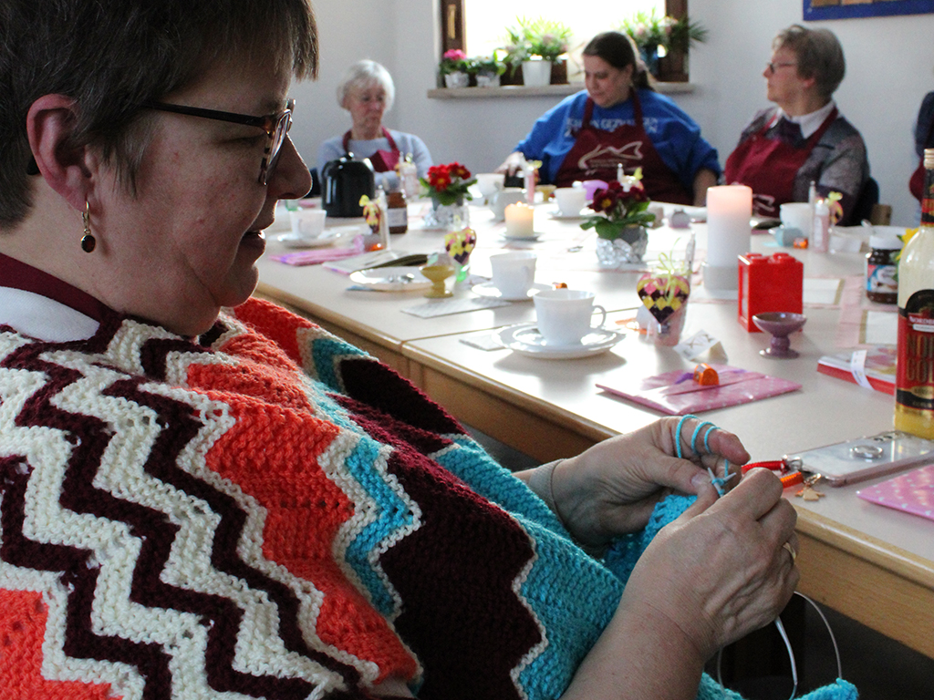 Heute treffen sich die „Kreativ Verrückten“ alle 14 Tage donnerstags – inzwischen in einem Raum der katholischen Kirchgemeinde. Neben dem gemütlichen Kaffeetrinken steht vor allem das gemeinsame kreative Arbeiten im Mittelpunkt: Stricken, Häkeln oder auch Quilling.