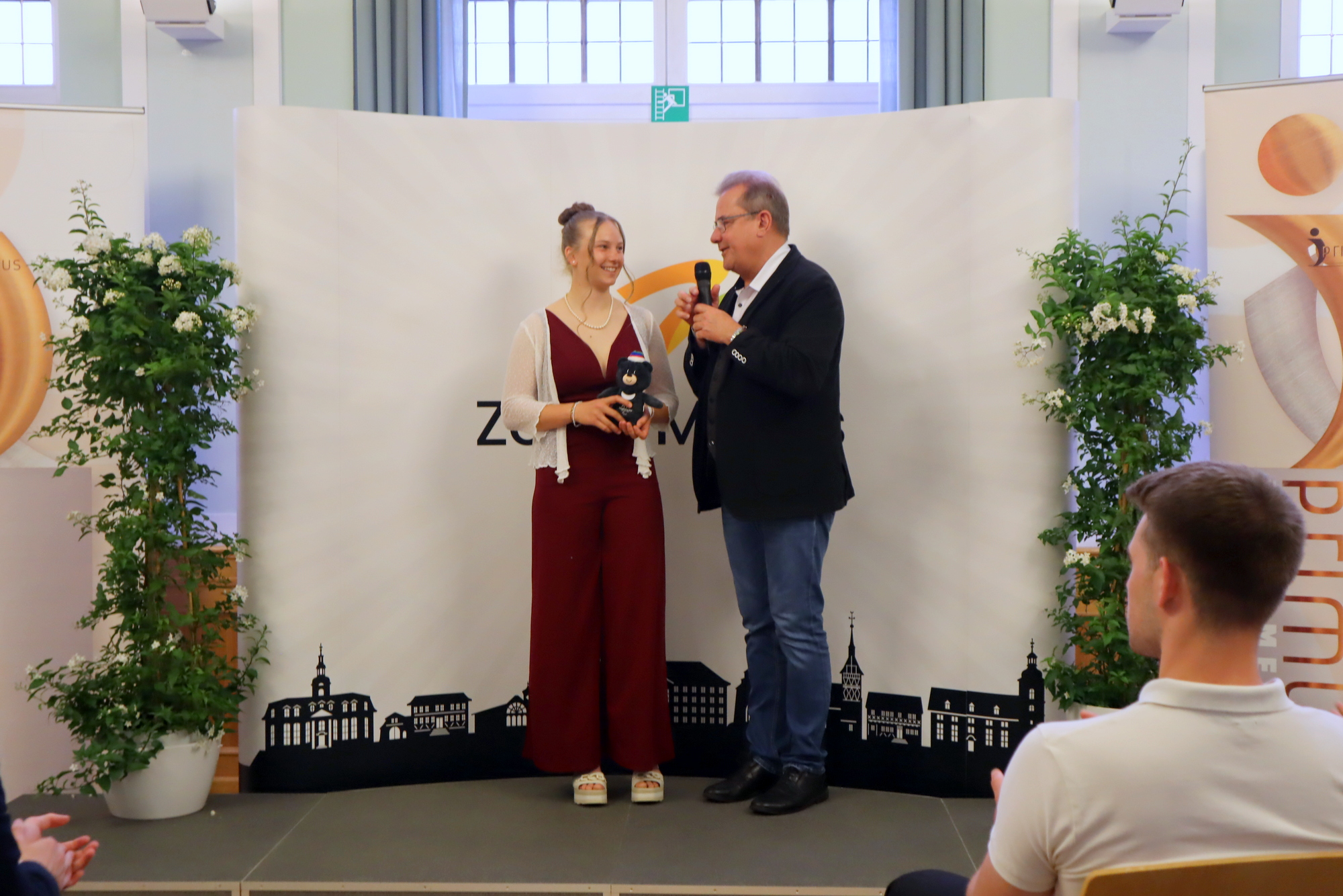Der Sport-Primus National ging an Anna-Lena Greiner vom SC „Motor“ Zella-Mehlis sowie an Cosima Sebastian und Martin Buchheim vom Rennrodelclub Zella-Mehlis. Cosima Sebastian beeindruckte Bürgermeister Richard Rossel stark mit ihren Erzählungen von ihrer Sportart: Skeleton. Sie erreicht bis zu 120 Kilometer pro Stunde auf der Strecke. Ein Video vom Start, bei dem sie selbst mit einer Hand den Schlitten anschiebt und sprintet, bevor sie sich mit dem Kopf voran auf den Bauch legt und in die Strecke ging, begeisterte alle Gäste des Festakts. Bungee-Springen würde sie sich aber nicht trauen. „Das kann ich ja nicht selbst kontrollieren“, sagte sie und berichtete, dass sie ihren Schlitten teilweise selbst zusammenbaut. Sie erreichte bei den Deutschen Meisterschaften den ersten Platz in der Jugend und den zweiten Platz bei den B-Junioren. Ihr Kollege Martin Buchheim erreichte bei den Deutschen Meisterschaften den dritten Platz bei den Herren und den zweiten Platz bei den B-Junioren. Er konnte leider bei der Verleihung nicht anwesend sein. Mit Cosima Sebastian auf der Bühne stand Anna-Lena Greiner, die bei der Deutschen Jugendmeisterschaft die Bronzemedaille holte. Sie erzählte, dass ihr die klassische Technik weitaus mehr Spaß macht als Skating. „Aber man muss beides können“, lachte sie.