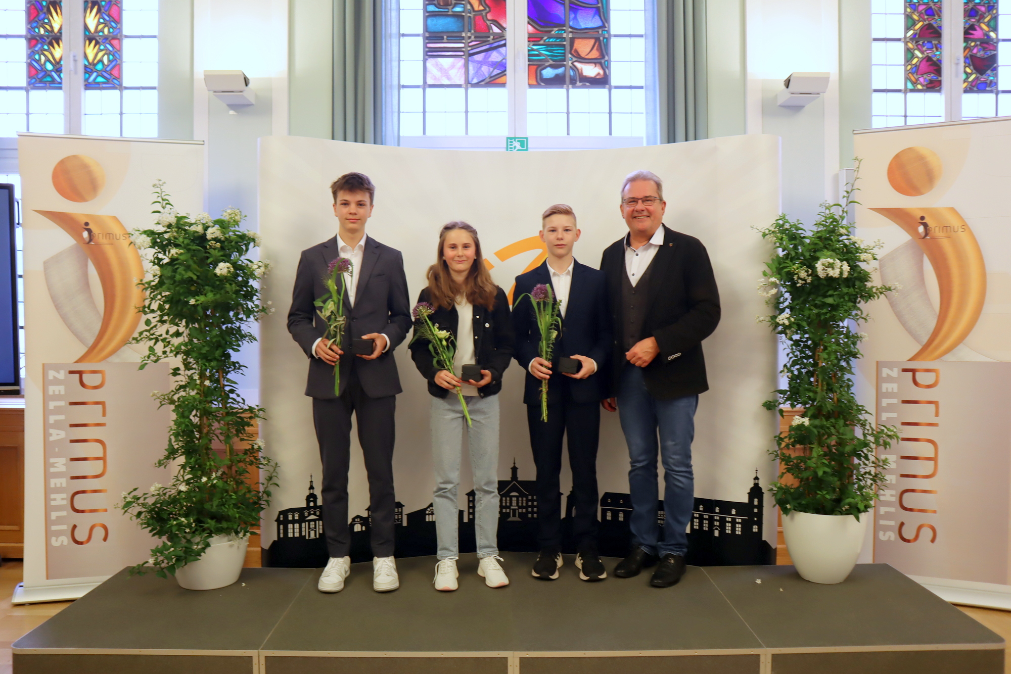 Weil solche Vorbilder ebenso wichtig für die jungen Sportler sind wie der Rückhalt, den sie aus ihren Familien und vom Verein erhalten, bat Bürgermeister Richard Rossel am Ende der Veranstaltung die Eltern aller ausgezeichneten Sportler nach vorn und dankte ihnen herzlich für ihr Engagement. „Eure Kinder sind Beweis dafür, dass Leistung noch etwas zählt“, lobte er und beschrieb, auf welch vielfältige Arten die Stadt die Arbeit der Vereine unterstützt: Von Zuschüssen zu den Betriebskosten über top-ausgestattete Sportanlagen bis hin zu Kosten für Trainer gibt die Stadt Zella-Mehlis pro Jahr rund 150.000 Euro aus. Für Bürgermeister Richard Rossel war diese neunte Verleihung des Sport-Primus nun die letzte der Veranstaltungsreihe, die ihm immer sehr am Herzen lag, seit er sie 2013 selbst ins Leben gerufen hatte.