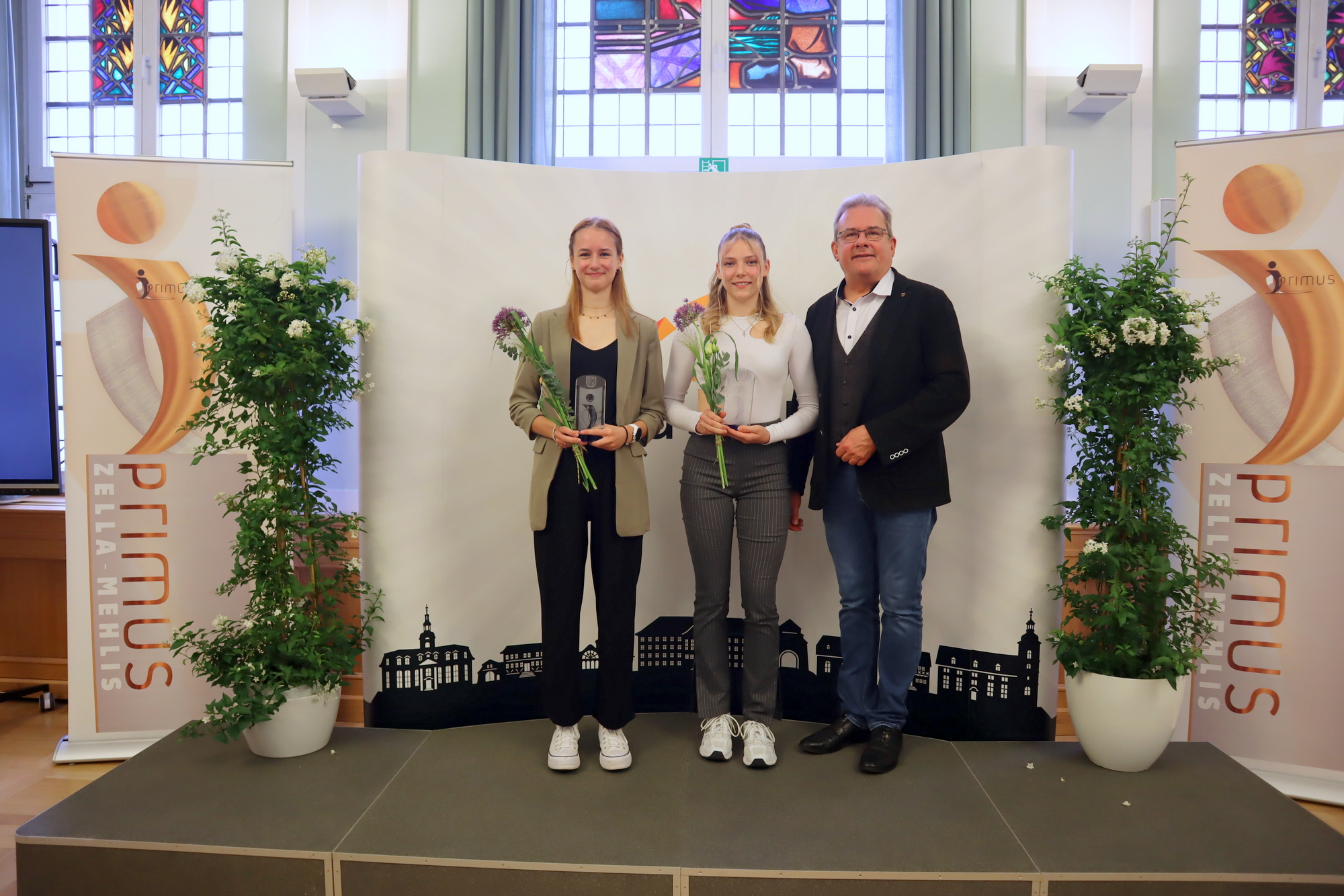 Anna-Lena Greiner und Cosima Sebastian erhielten den Sport-Primus National. -
