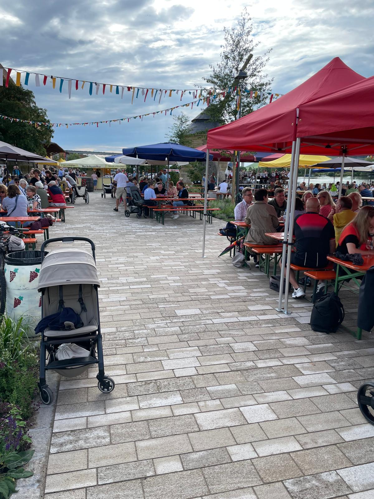 Das Weinfest in Marktbreit hat eine lange Geschichte und geht zurück auf die Tradition des Weinbauorts im Anbaugebiet Franken. Bereits seit dem Frühmittelalter betrieben die Menschen um Marktbreit Weinbau. Neben der Altstadt mit ihren historischen Sehenswürdigkeiten zieht die Weinlandschaft um Marktbreit auch heute noch die Touristen an. Das Weinfest wird vom Heimatverein gemeinsam mit der Stadt Marktbreit veranstaltet und von weiteren Vereinen sowie den örtlichen Winzern unterstützt. In diesem Jahr fand es erstmals auf dem neu gestalteten Areal am Mainufer statt. Neben gutem Wein und Geselligkeit spielte Blasmusik und am Abend eine Rockband.