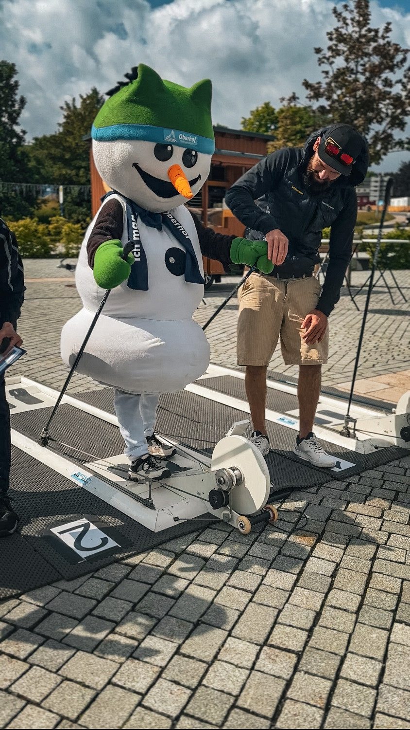 Der Citybiathlon bietet Groß und Klein eine Menge Spaß. Auch Schneemann Flocke wird wieder mit dabei sein und sich auf dem Thoraxtrainer ins Zeug legen. / Quelle: Tourismus GmbH Oberhof -