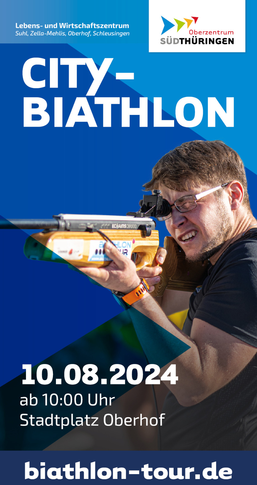 Anmeldung unter: https://www.oberhof.de/veranstaltung/city-biathlon-biathlon-deutschland-tour-2024-mit-michael-roesch-im-oberzentrum-suedthueringen-945db6966a