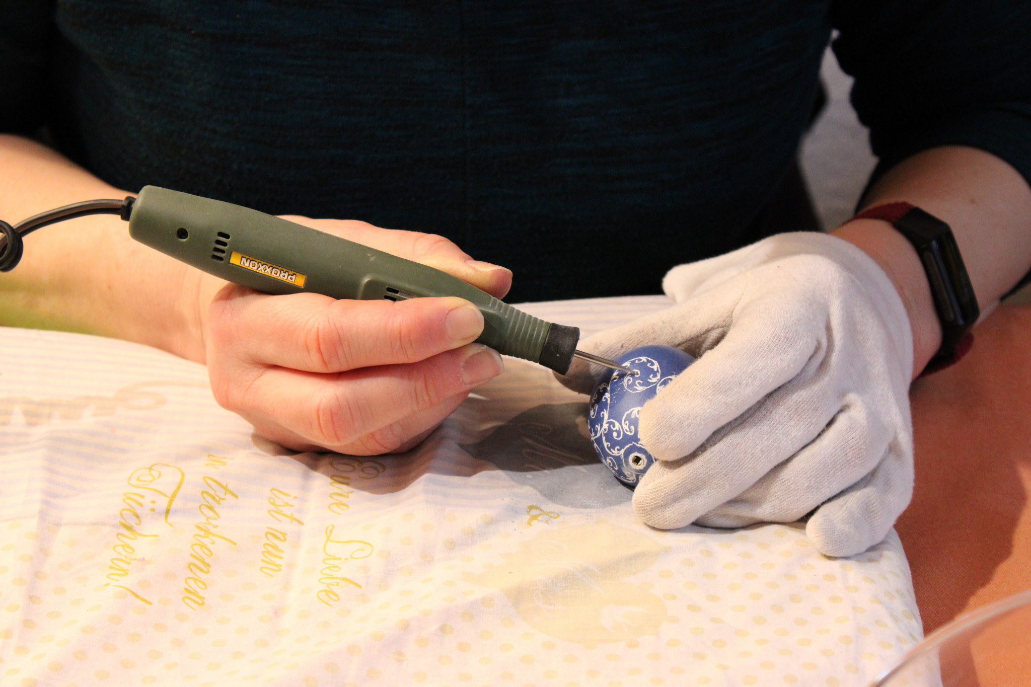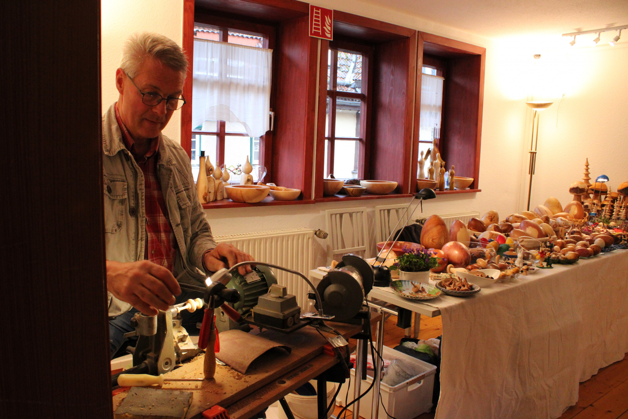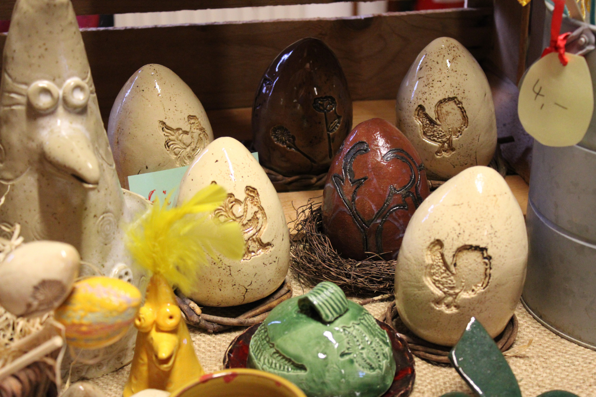 Ob aus Keramik gefertigte Osterhäschen und bunte Blumen oder gestrickte Woll-Küken oder in Kratztechnik verzierte gefärbte Ostereier - für alle, die Osterdekoration lieben oder auf der Suche nach einem neuen Schmuck für den Osterstrauch waren, gab es allerhand zu sehen und zu kaufen. Dabei konnte man den Kunsthandwerkern - beispielsweise beim Drechseln oder auch verzieren der Ostereier - über die Schulter schauen und mit ihnen ins Gespräch kommen. Gerade dieses familiäre Flair schätzen Händler und Besucher gleichermaßen. Dabei war es für viele ein wiedersehen und ein erstes "Hallo" in der beginnenden Frühlingszeit. Aber auch viele Neulinge, die von dem besonderen Ambiente des kleinen feinen Marktes in Bürgerhaus und Scheune gehört hatten, waren dabei.