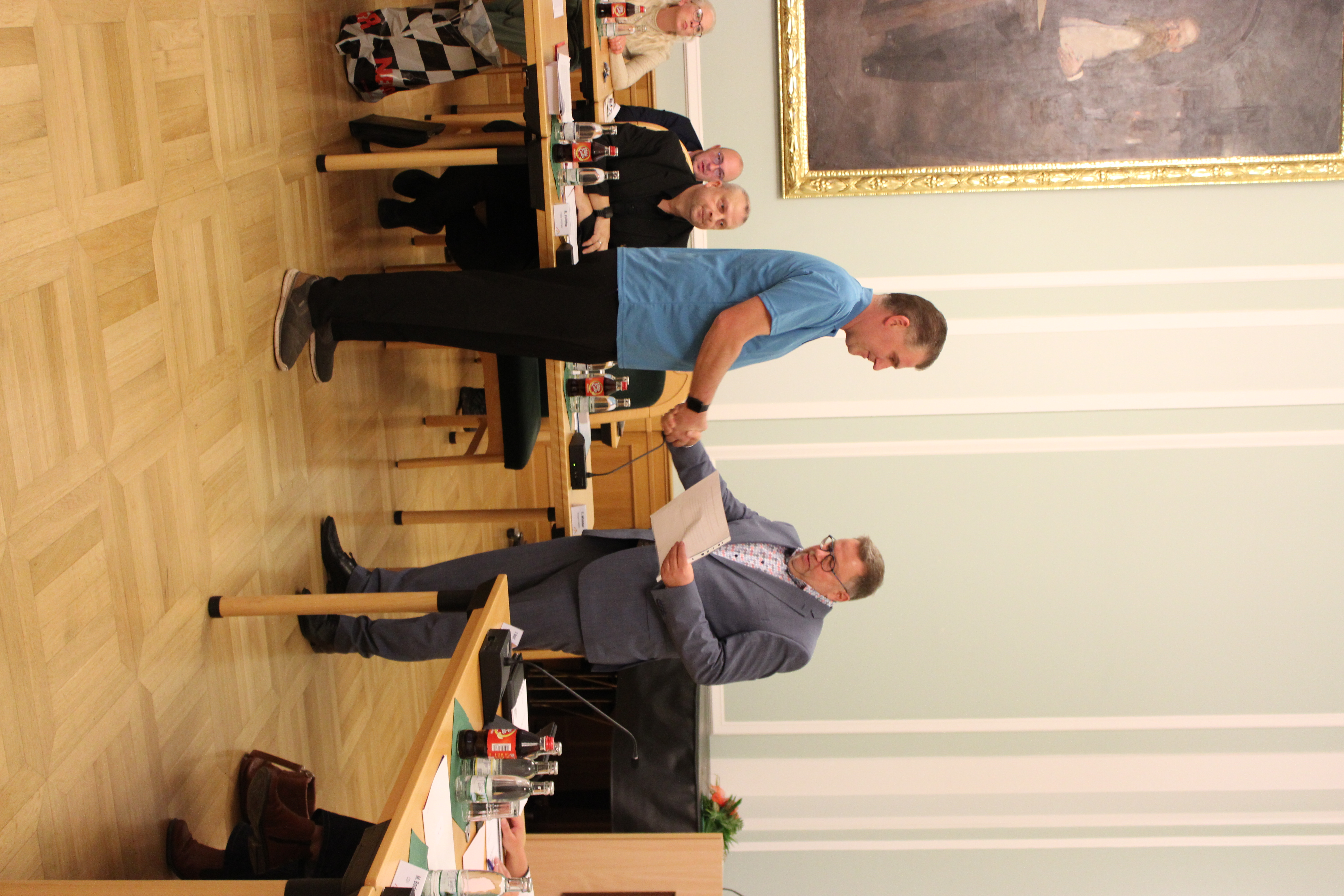 In der Stadtratssitzung am Dienstagabend, 30. September 2025, ist Manuel Kanzler als Nachrücker für die Fraktion der AfD durch Bürgermeister Torsten Widder verpflichtet worden. Er sprach die vorgegebene Verpflichtungsformel nach und gelobte, seine Pflichten als Stadtratsmitglied gewissenhaft zu erfüllen sowie das Grundgesetz der Bundesrepublik Deutschland, die Verfassung des Freistaats Thüringen und die Gesetze zu wahren. Per Handschlag wurde er durch den Bürgermeister zur gewissenhaften Wahrnehmung des Ehrenamts verpflichtet.