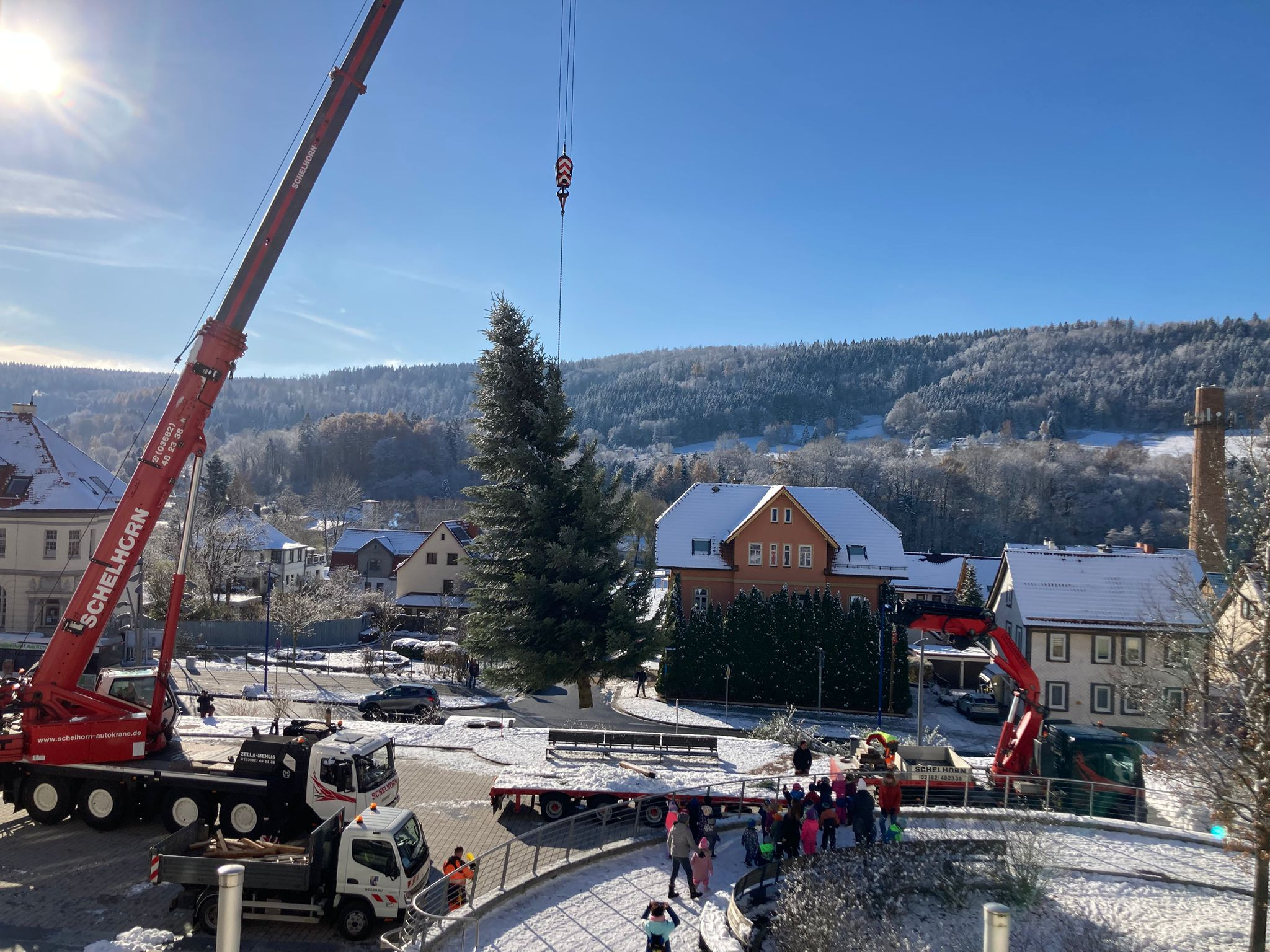 1996 hat Norbert Sillmann die etwa fünf Jahre alte Tanne auf seinem Grundstück gepflanzt. „Sie war immer wunderschön anzuschauen und hat uns all die Jahre viel Freude gemacht“, sagt Norbert Sillmann. Erst vor zwei Jahren entschied er, dass der Baum gefällt werden sollte. Denn inzwischen war dieser sehr groß und damit auch nah ans Haus heran gewachsen. Als er bei der Stadtverwaltung Zella-Mehlis die Fällgenehmigung beantragte, kam die Idee auf, die Nordmanntanne als städtischen Weihnachtsbaum zu nutzen. „Er wäre ja doch zu schade zum Schneiden und Verbrennen. Deswegen geben wir ihn gern“, findet Norbert Sillmann und freut sich, dass es nun soweit ist und die Nordmanntanne zum Nikolausmarkt und in der Weihnachtszeit im schönsten Licht erstrahlen wird.