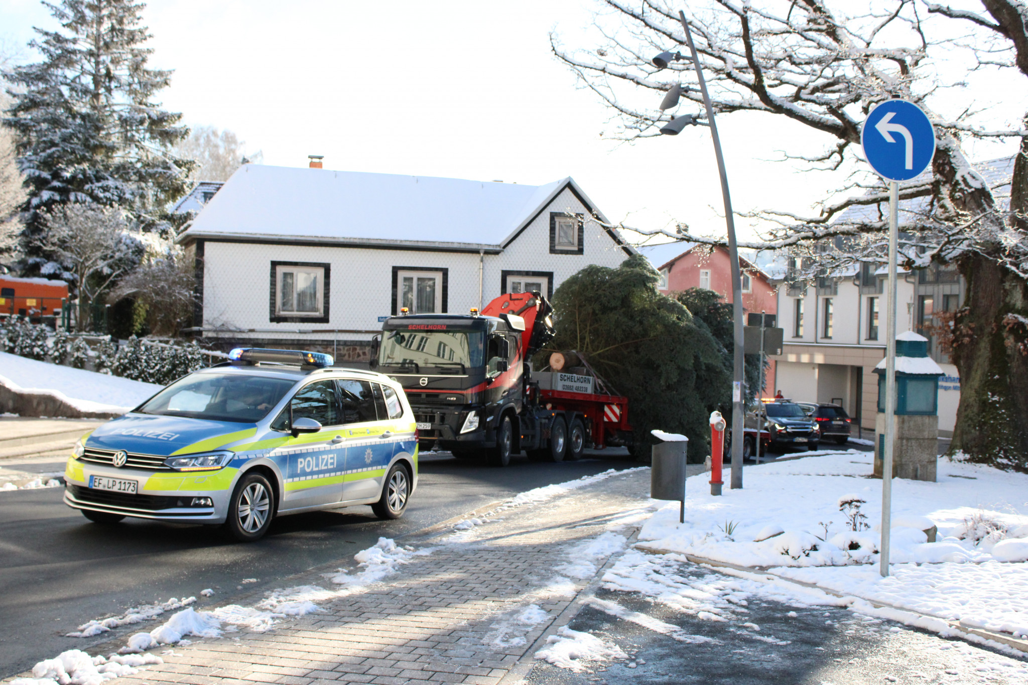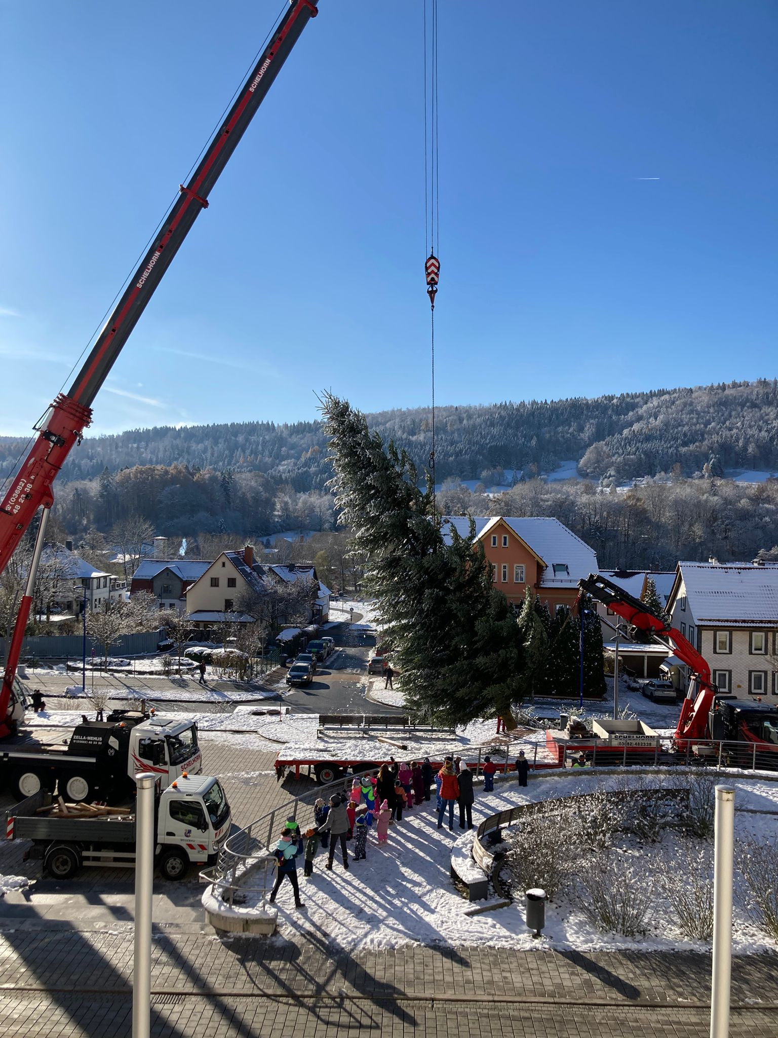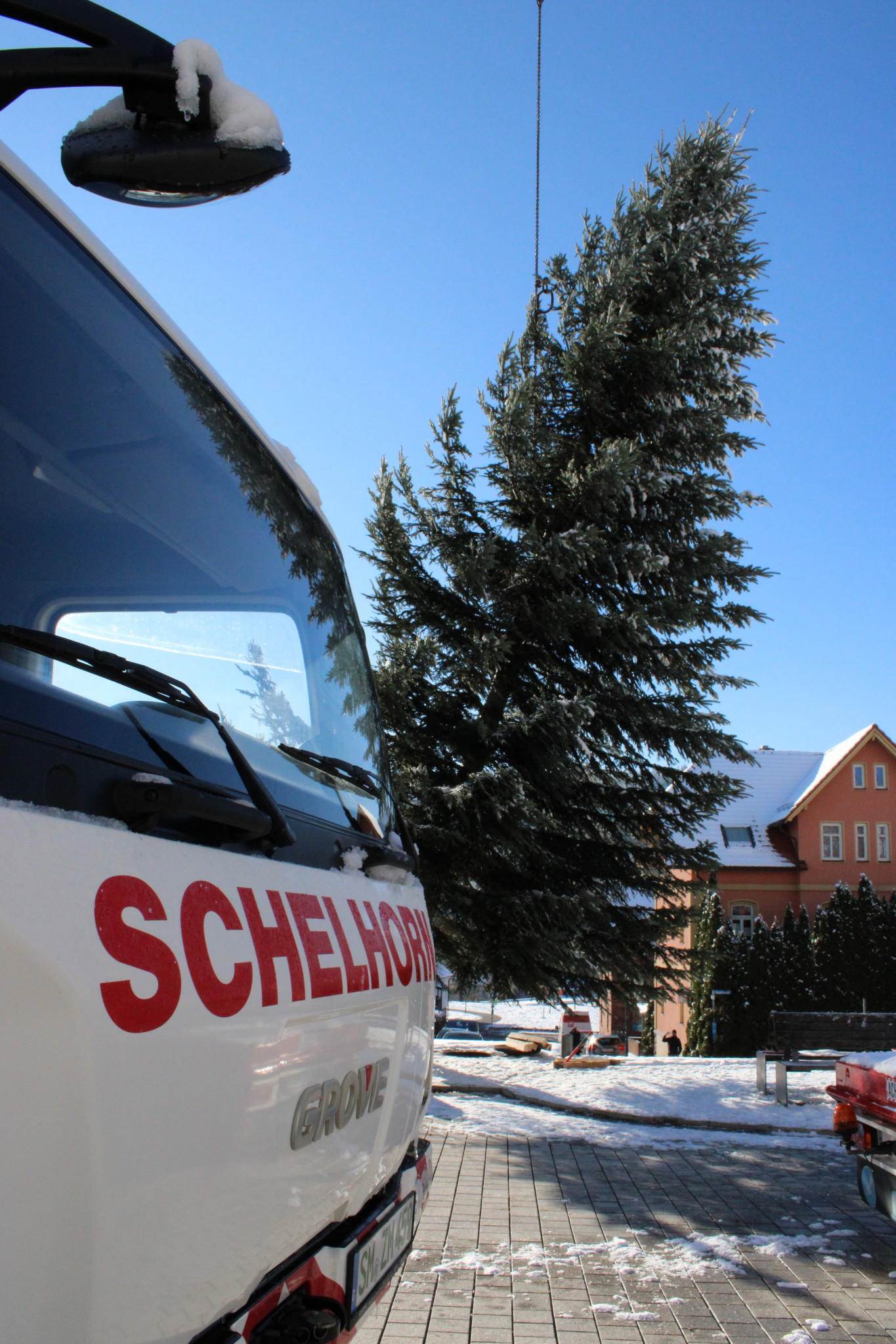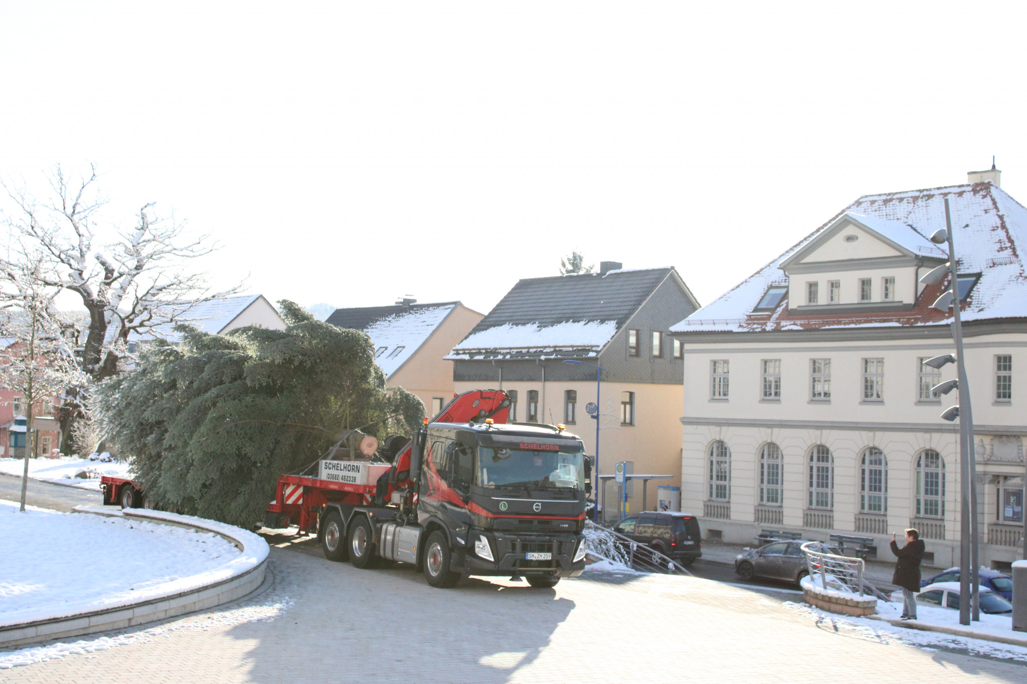 Ein Dank geht an die Firma Schelhorn und die Mitarbeiter des Fachdienstes Stadtservice, die wieder für einen sicheren Ablauf und Transport gesorgt haben und den Baum aufstellten.