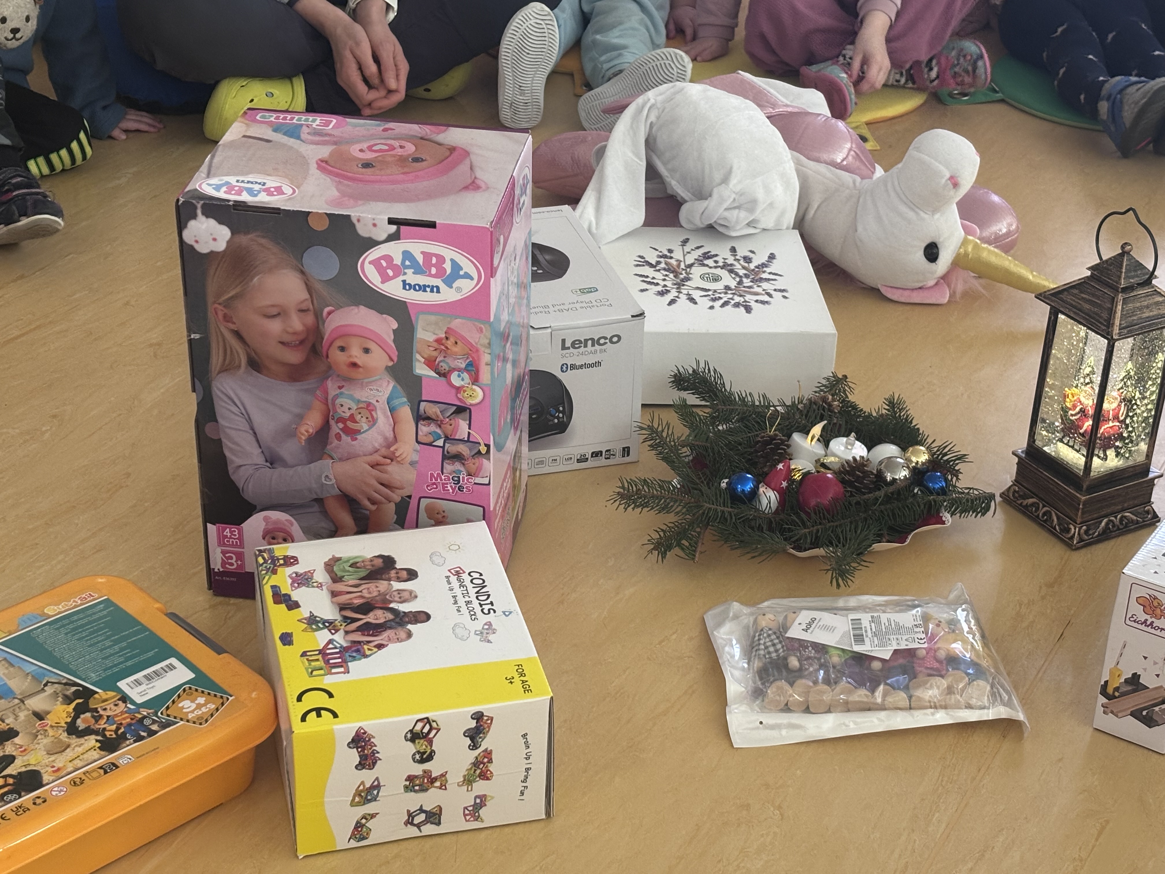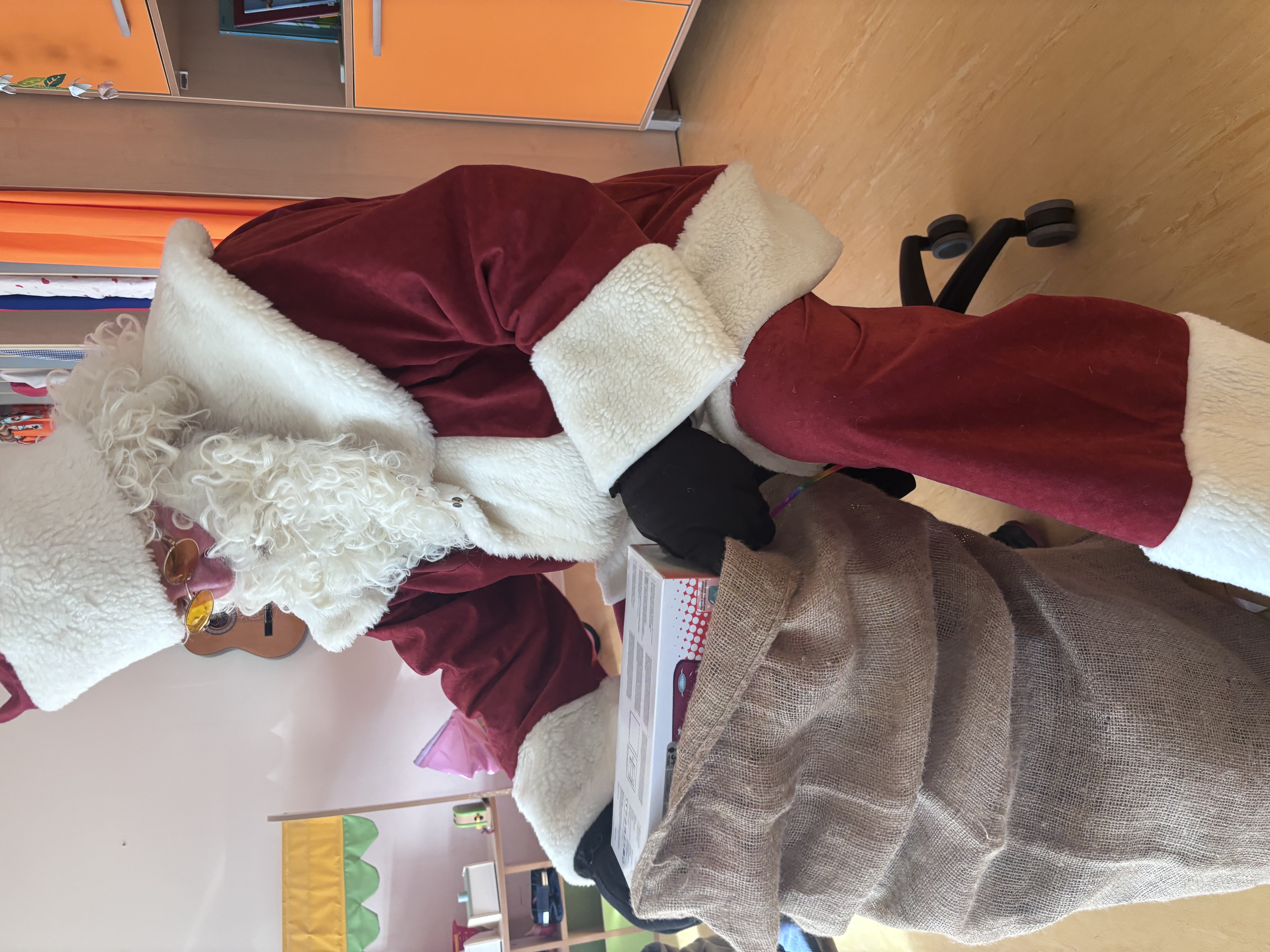 Der Weihnachtsmann wurde wieder von Jens Haeckl liebevoll gespielt. Die Jungen und Mädchen bedanken sich für die Geschenke und das Erzieherteam für den Einsatz des Weihnachtsmannes.