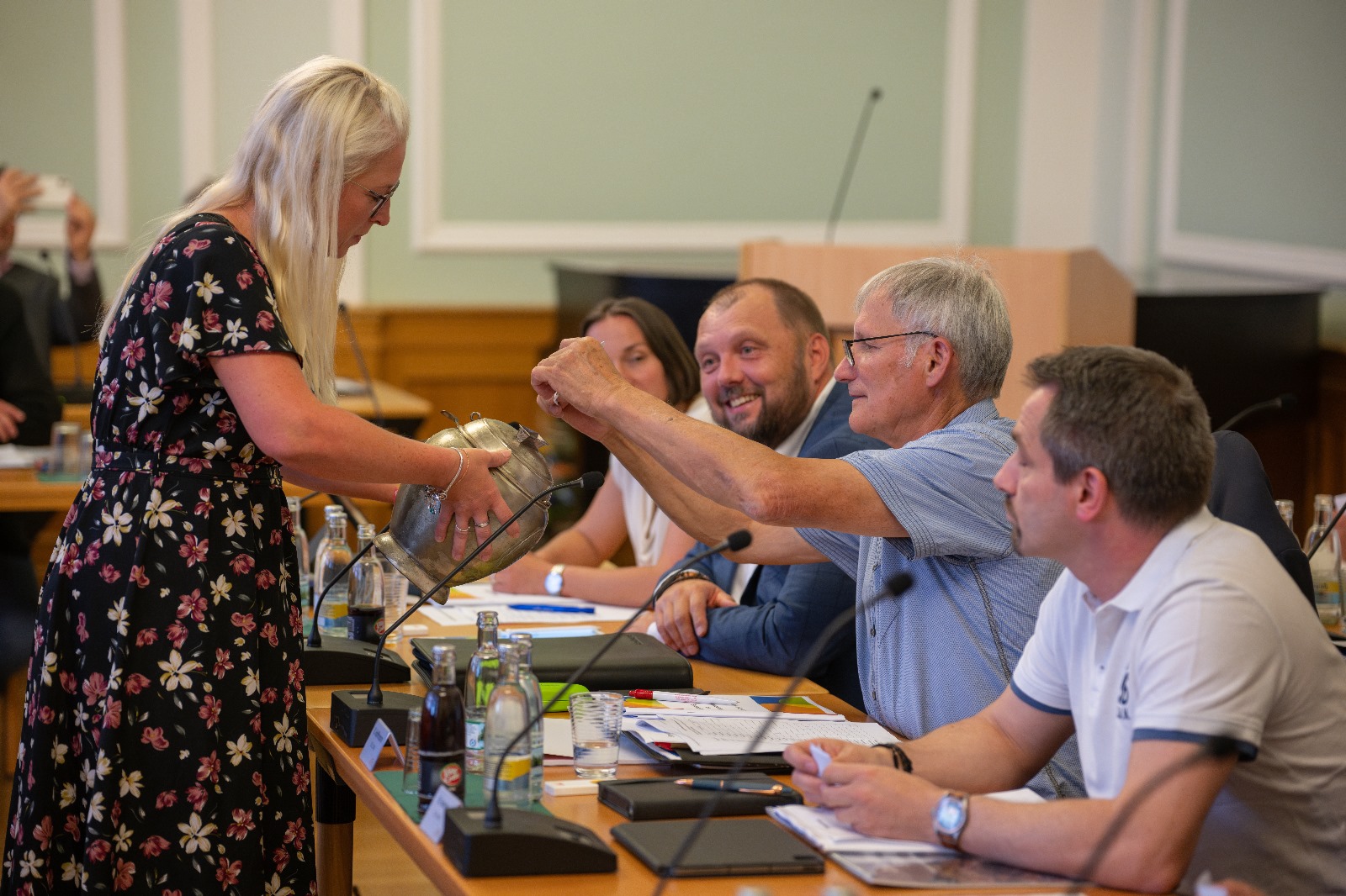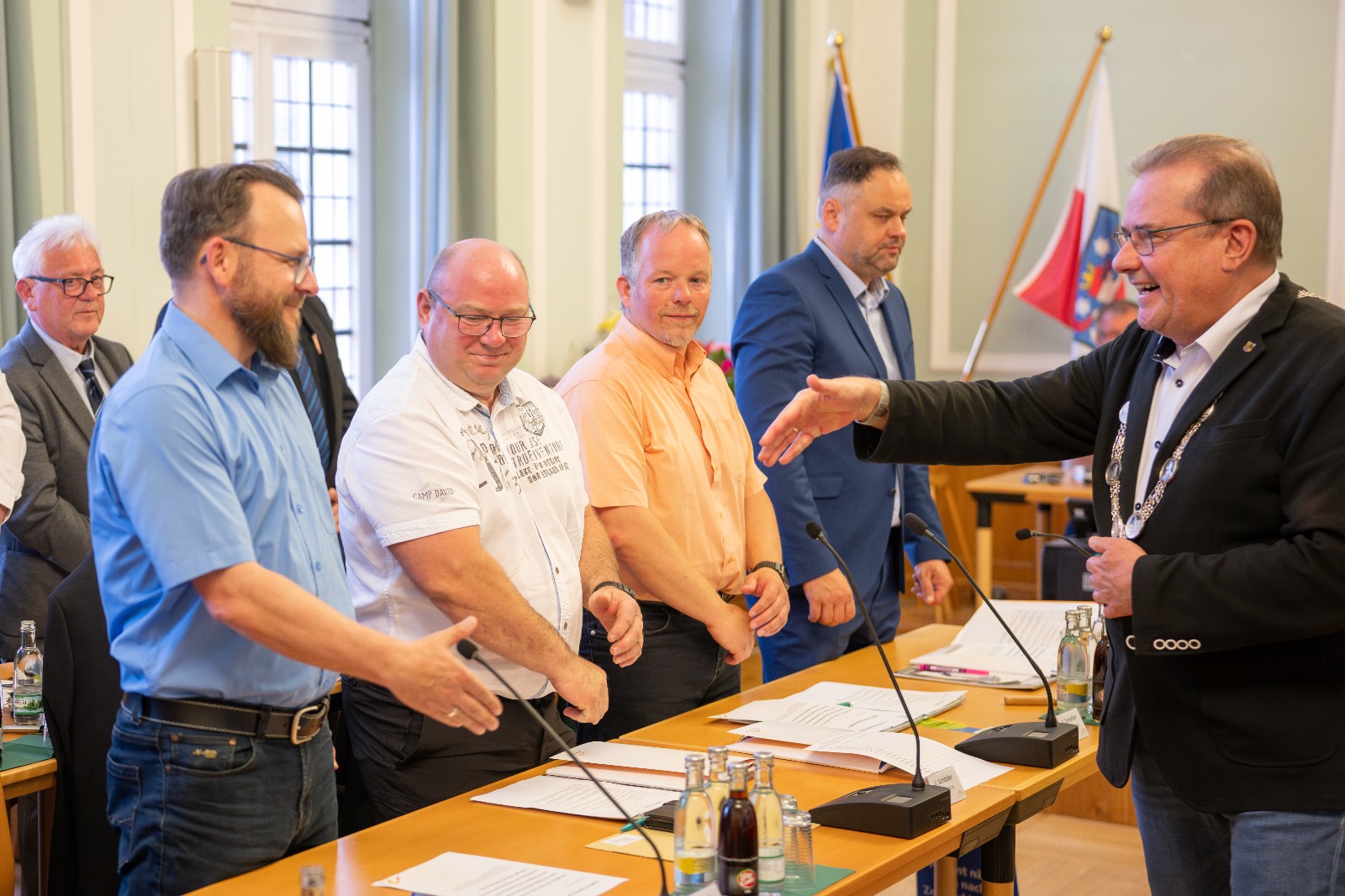 Zum Abschluss der Sitzung wünschte der neue Stadtratsvorsitzende Ralph Flöthe dem Gremium viel Erfolg bei seiner Arbeit. Er begleitete das mit dem lateinischen Wunsch: „Fortiter in re suaviter in modo“ – „Entschlossen in der Sache, milde in der Art.“