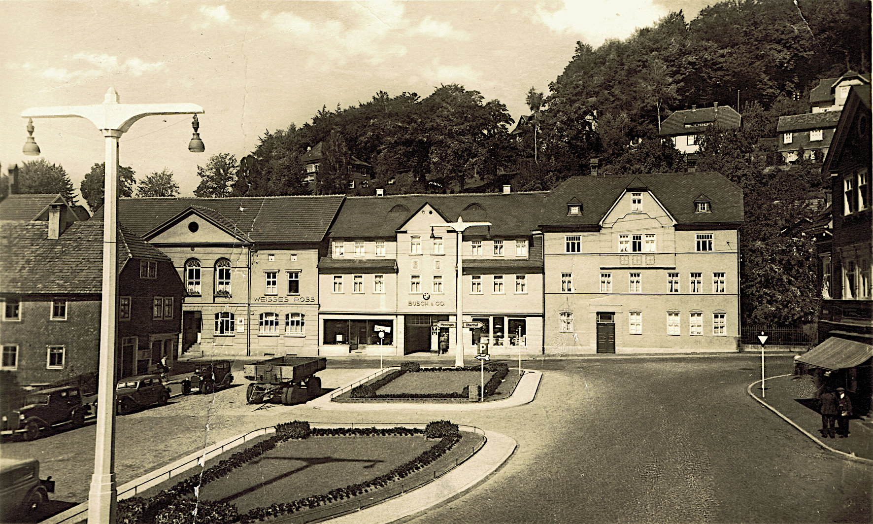 Das Haus Markt 5, bei Fertigung des Kalenders Carl-Walther-Platz 5 und später Karl-Marx-Platz 5, heute Zellaer Markt 5 (so ändern sich Zeiten und Namen), war 1845 als Brauerei und Gasthof „Stollberger Hof“, später Gasthaus „Weißes Ross“, gebaut worden. Hier tagte zeitweise der Stadtrat von Zella St. Blasii in der Ratsstube im Obergeschoss. Nachdem 1905 das „Weiße Ross“ in das Nebenhaus umzog, erfolge der Umbau zum Wohn- und Geschäftshaus. Die Firma Busch & Co., eine Elektrikfirma, die auch am Bau des Zella-Mehliser Rathauses beteiligt war, hatte über Jahrzehnte dort ihren Sitz. Das Wohn- und Geschäftshaus wurde immer wieder mal an- und umgebaut, umgewidmet und saniert. Just am zweiten Weihnachtsfeiertag 2009 wurde es durch einen Großbrand unrettbar beschädigt. Seit dem Abriss klafft an der Stelle eine Baulücke, die das Ensemble Zellaer Markt empfindlich stört.