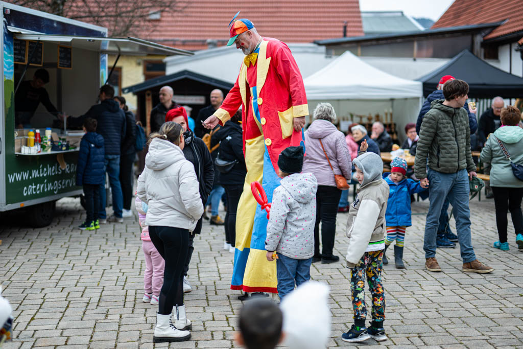 Während Erwachsene an den Ständen der Händler und Kunsthandwerker stöbern, die Kinder Karussell fahren, bieten die Händler natürlich auch wieder alles für den kleinen (oder größeren) Hunger zwischendurch. Ob süße Naschereien, ein Stück Kuchen oder doch die traditionelle Bratwurst im Brötchen vom Rost oder einfach ein gekochtes, buntes Osterei aus dem Körbchen des Osterhasen – der Ostereiermarkt spricht alle Sinne an. Auch deswegen lohnt sich ein Verweilen im Bürgerhaus und ein Bummel durch den kleinen Hof mit den verschiedenen Ständen.