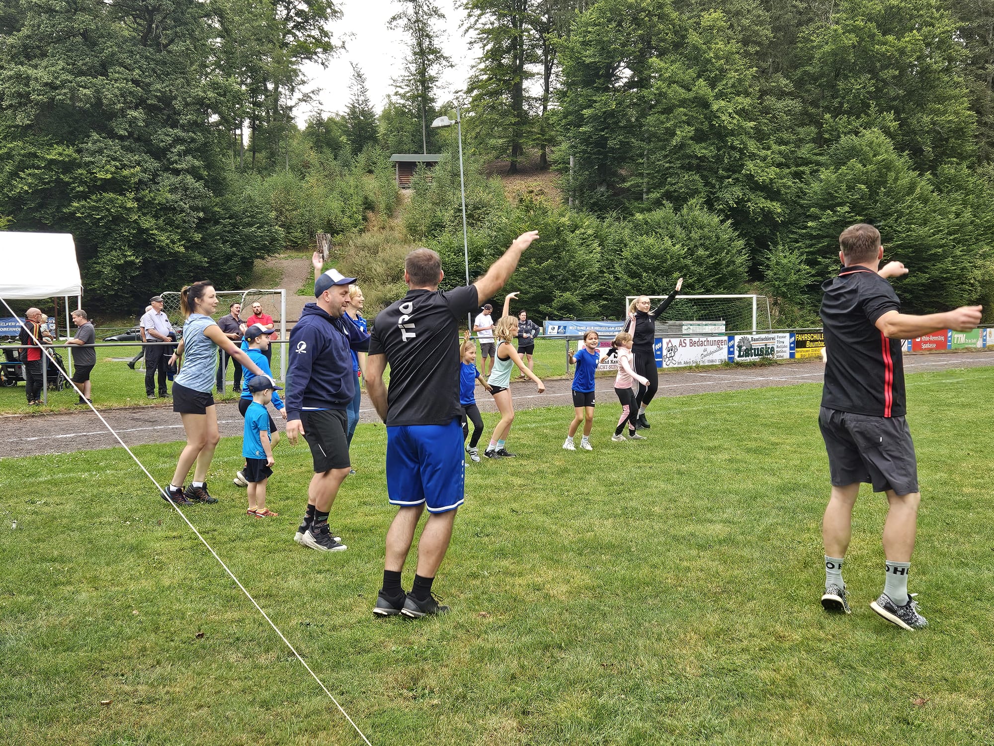 Die Stimmung unter den Teilnehmern war trotzdem super! Marco Bader, Zweiter Beigeordneter des Bürgermeisters, eröffnete das Sportfest und wünschte allen viel Erfolg entsprechend ihrer Ziele. Nach einer gemeinsamen Erwärmung ging es in die Wettkämpfe: Sprint über 30, 50 oder 100 Meter, Weitwurf und Kugelstoßen sowie Weitsprung. Ausdauerläufe wurden über 800 und über 3000 Meter absolviert. Als sportlichste Familien wurden die Familien Latuske, Keiner, Diem und Weidemann ermittelt.