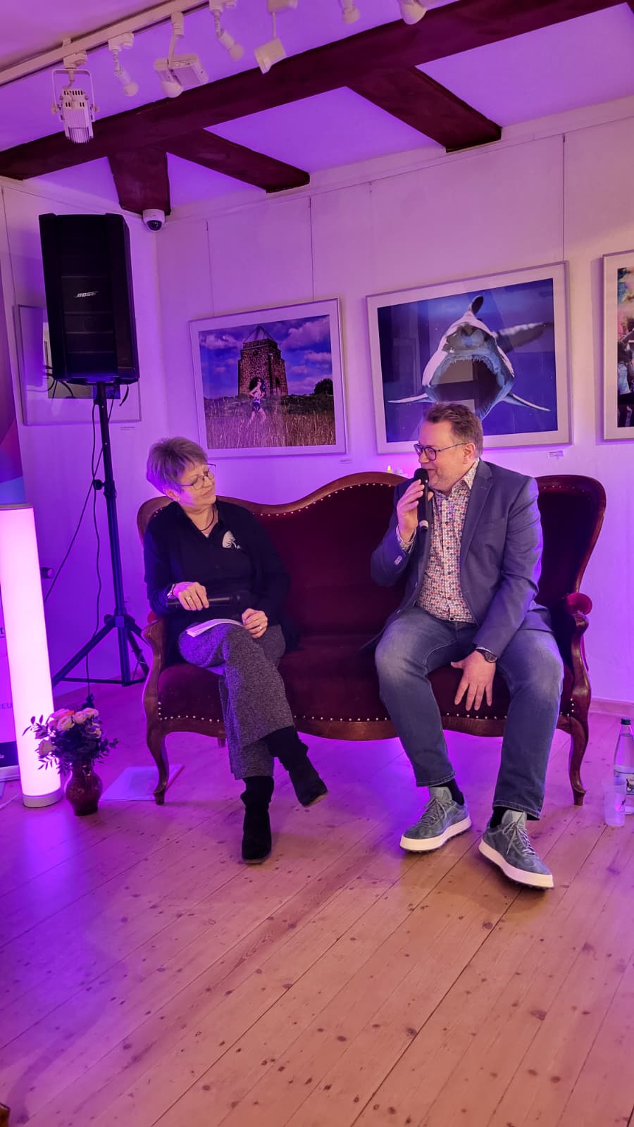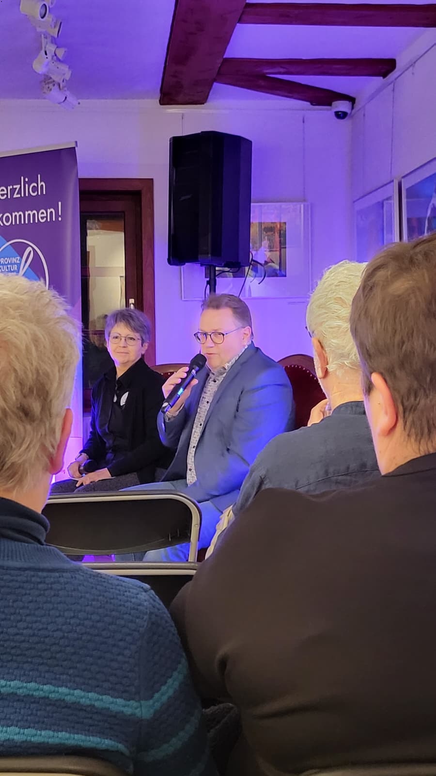 Welche Hobbys hat der Bürgermeister?  Welche Themen bewegen ihn als Politiker aber auch als Mensch? Und wie sieht er die Zukunft der Stadt? Diesen und weiteren spontanen Fragen – auch aus dem Publikum – stellte sich Torsten Widder in der ersten Veranstaltung im neuen Jahr in der Reihe „BürgerGalerie“ des Vereins Provinzkultur. Nach einem Sektempfang leitete Sandra Hyneck von Provinzkultur als Moderatorin entspannt durch den Abend in der Galerie im Bürgerhaus. Dieser war eine Mischung aus ernsten Themen und Unterhaltung.