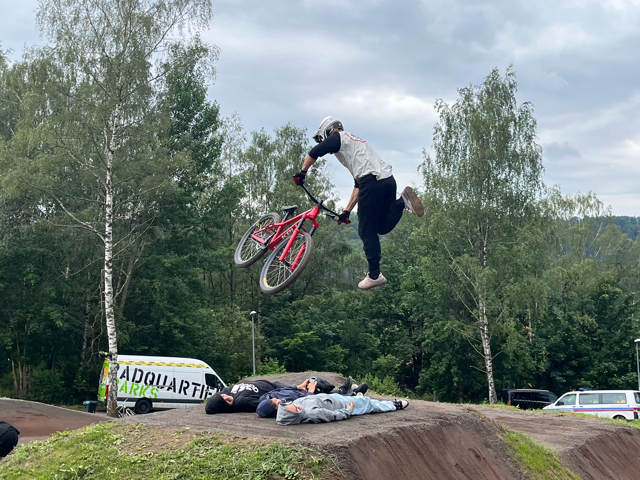 Die Biker konnten es kaum erwarten und sind mit Mut und viel Geschick anschließend immer wieder rauf und runter gefahren, haben sich immer mehr Tricks getraut und ihr Können unter Beweis gestellt. Mit dabei waren die beiden Profis Tomas Zejda und Vilibald Vitek, die nicht nur waghalsige Stunts zeigten, sondern so manchen Kniff für die Zella-Mehliser Hobbyfahrer parat hatten.