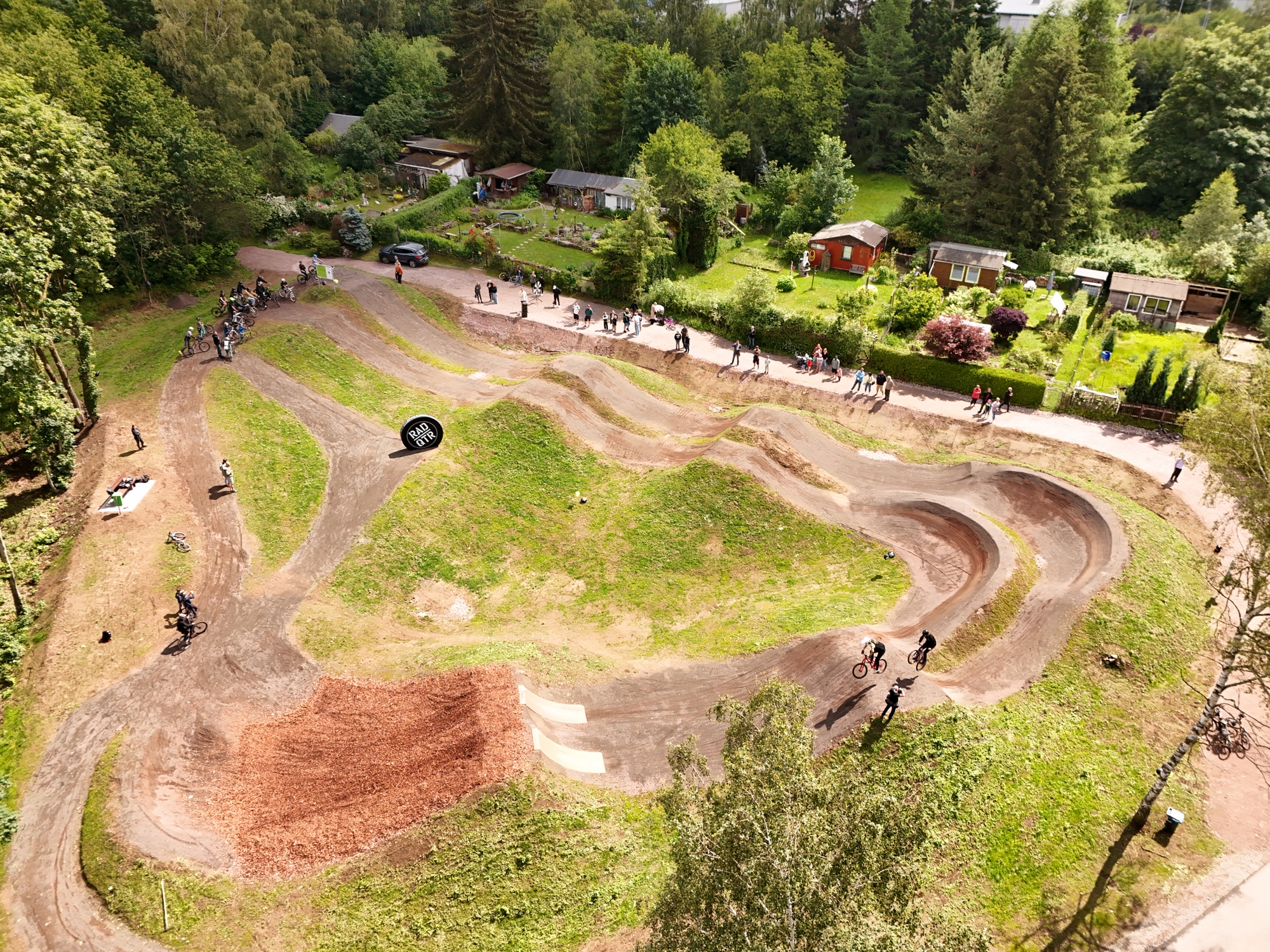 Bürgermeister Richard Rossel war sehr zufrieden, dass der Wunsch der Jugendlichen nun am Ende seiner Amtszeit noch umgesetzt und eröffnet werden konnte. „Die Zusammenarbeit mit der Firma RadQuartier, die mit solchen Projekten bundesweit Erfahrungen gesammelt hat, war eindeutig die richtige Entscheidung“, sagte er mit Blick auf die gelungene Umsetzung. RadQuartier-Geschäftsführer Robin Specht erläuterte, dass für die Anlage 2500 Tonnen zertifiziertes Gemisch verbaut wurden. „Das ist das gleiche Material, das auf der Autobahn als Schottertragschicht verbaut wird“, erläuterte er. Es verdichtet sich durch das Befahren und durch die Witterung immer weiter, so dass die Strecke nicht nur sehr haltbar ist, sondern im Laufe der Zeit für die Fahrer sogar noch „schneller“ wird.