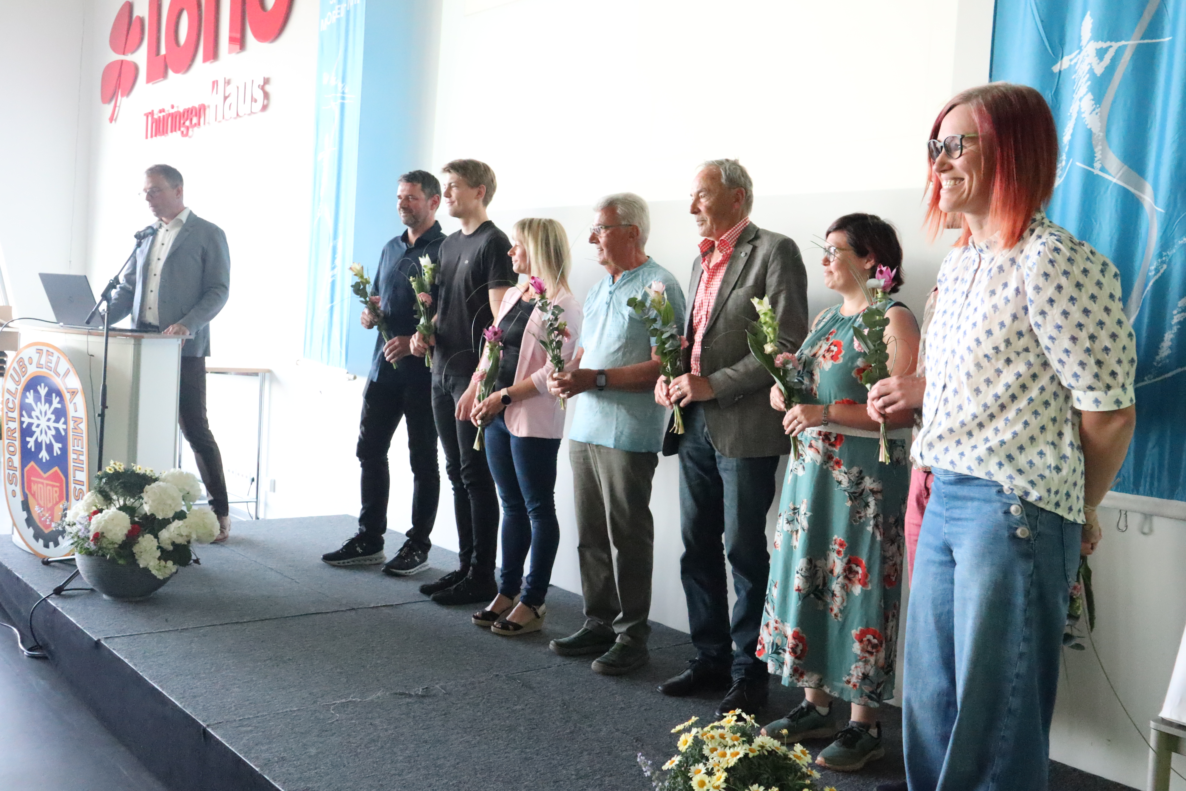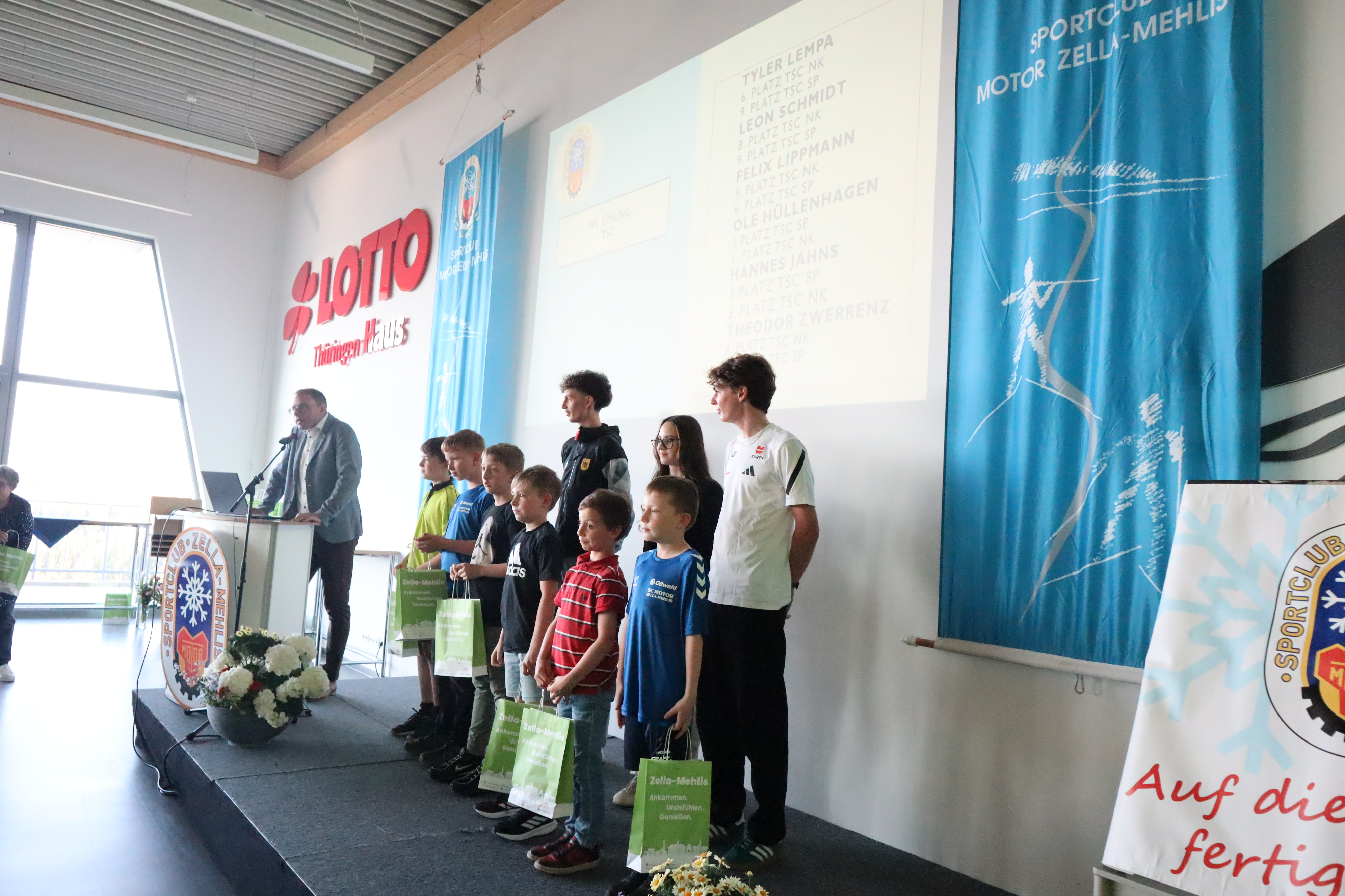 Der Sportclub „Motor“ Zella-Mehlis lädt nach jeder Wintersaison Sportler, Trainer, Förderer, Sponsoren und Freunde ein, um gemeinsam auf die zurückliegenden Monate zu schauen und die Erfolge der Sportler gebührend zu feiern. In der Saison 2024/2025 haben die Nachwuchstalente Anna-Fay Scharfenberg und Richard Stenzel bei der Junioren-Weltmeisterschaft im kanadischen Whistler Medaillen gewonnen. Sie und viele weitere Nachwuchssportler wurden ebenfalls auf die Bühne geholt, um sie im Beisein von ihren Familien und der anderen Vereinsmitgliedern zu ihren Erfolgen zu beglückwünschen. Die Gratulationen nahmen Vereinspräsident Thomas Weiß sowie die erfolgreichen Sportler Victoria Carl, Anna-Fay Scharfenberg, Richard Stenzel und Albin Stenzel vor.